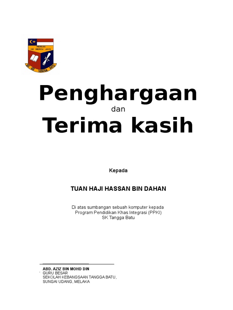 Penghargaan terbahagi kepada 3 bahagian kebiasaannya. حاج محمد نجيب بن تون حاج عبدالرزاق. Contoh surat penghargaan sumbangan derma.